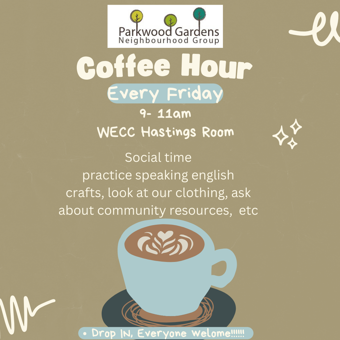 A social time to drop in, meet neighbours, practice English, do crafts, look at clothing, ask about community resources etc.