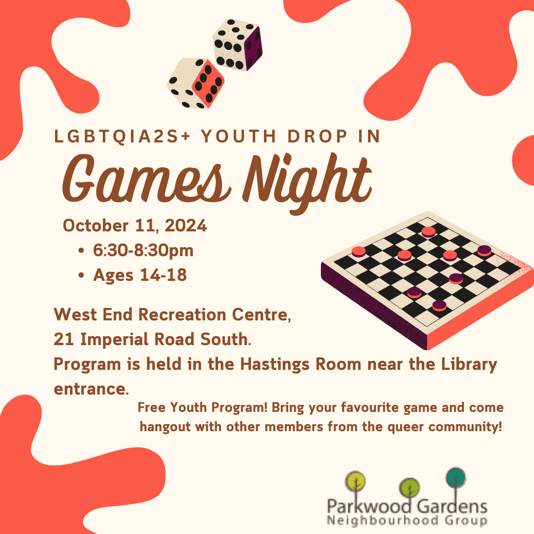 Free youth program! Bring your favouritw game and come hang out with other members from the queer community.